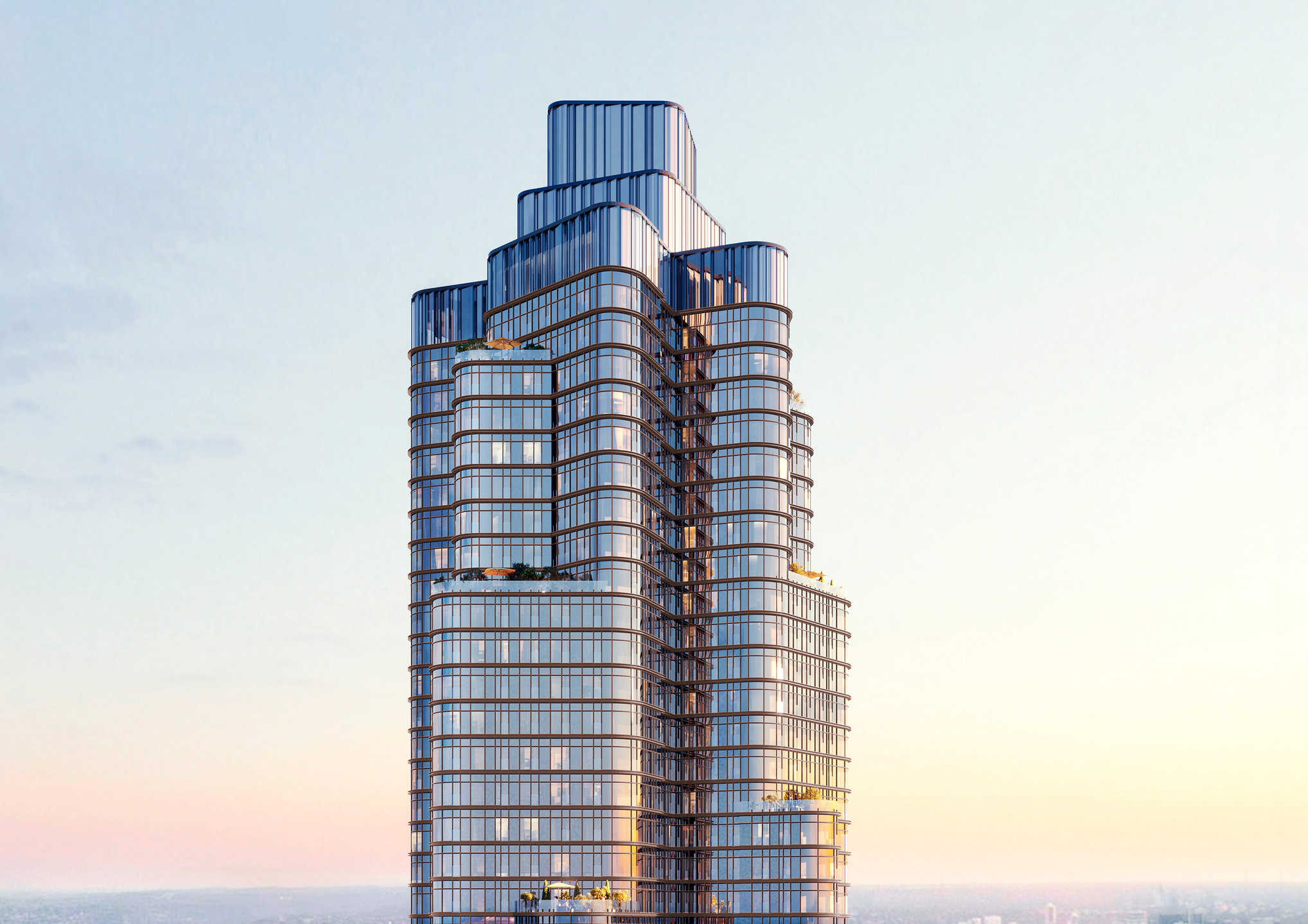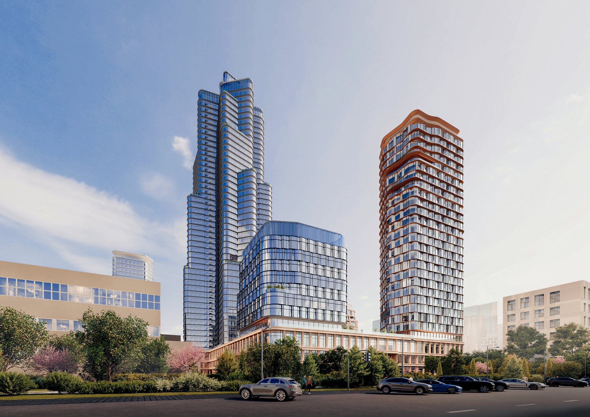 Это не просто здание, а воплощение уникальной концепции, которая сочетает в гармонии природные силуэты и фрактальную архитектуру, создавая уютную и респектабельную атмосферу. Архитектура проекта символизирует рост и устремление в будущее. Нижняя часть здания, покрытая натуральным камнем, выражает надежность и силу, а расположенные выше стеклянные конструкции являются символом легкости и простора. Такой симбиоз отражает пространственные процессы изменения и обновления, воплощает идею перерождения.