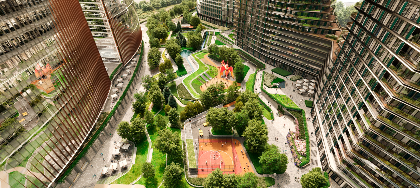 Ступенчатая форма и расположение корпусов увеличивает доступную обзорность, подчеркивая виды на исторические и природные достопримечательности центра Москвы и парки запада столицы. Дизайн фасадов и окон позволяет жилым пространствам внутри пропускать через себя как можно больше естественного света и экономить расход энергии.