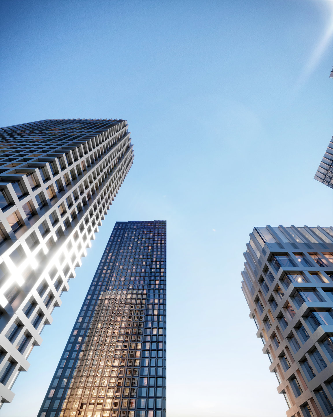 Футуристичные и монументальные башни сверхкваратала Upside Towers станут новой урбанистической доминантой всего района.