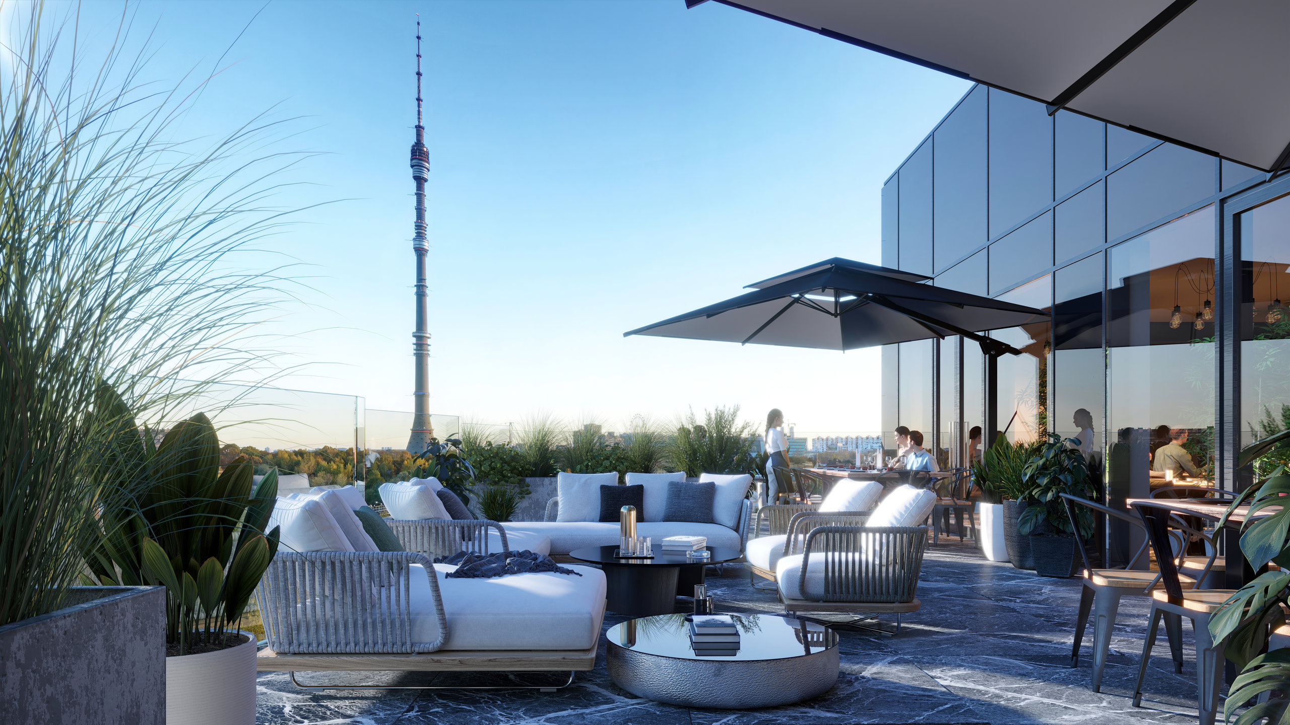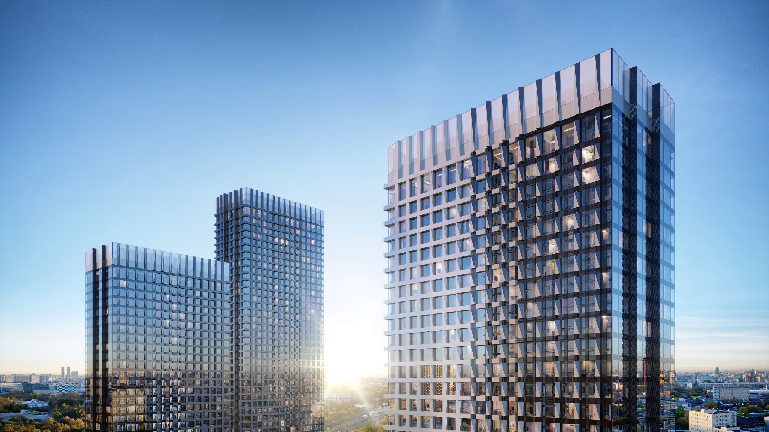 Элегантная и грациозная эстетика архитектуры домов нашла свое отражение не только в очертании зданий, но и в стеклянных фасадах, отражающихся на солнце, как заснеженные шапки горных вершин.